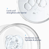 Lactic Acid: A gentle alpha hydroxy acid that stimulates ceramide production for a strengthened skin barrier that retains moisture and prevents TEWL more effectively.